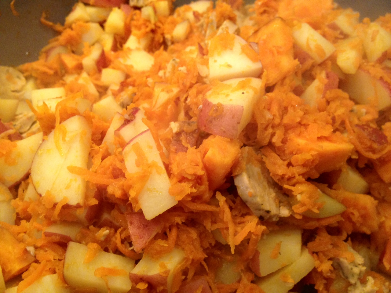 2 medium sweet potatoes, again, cut into small chunks