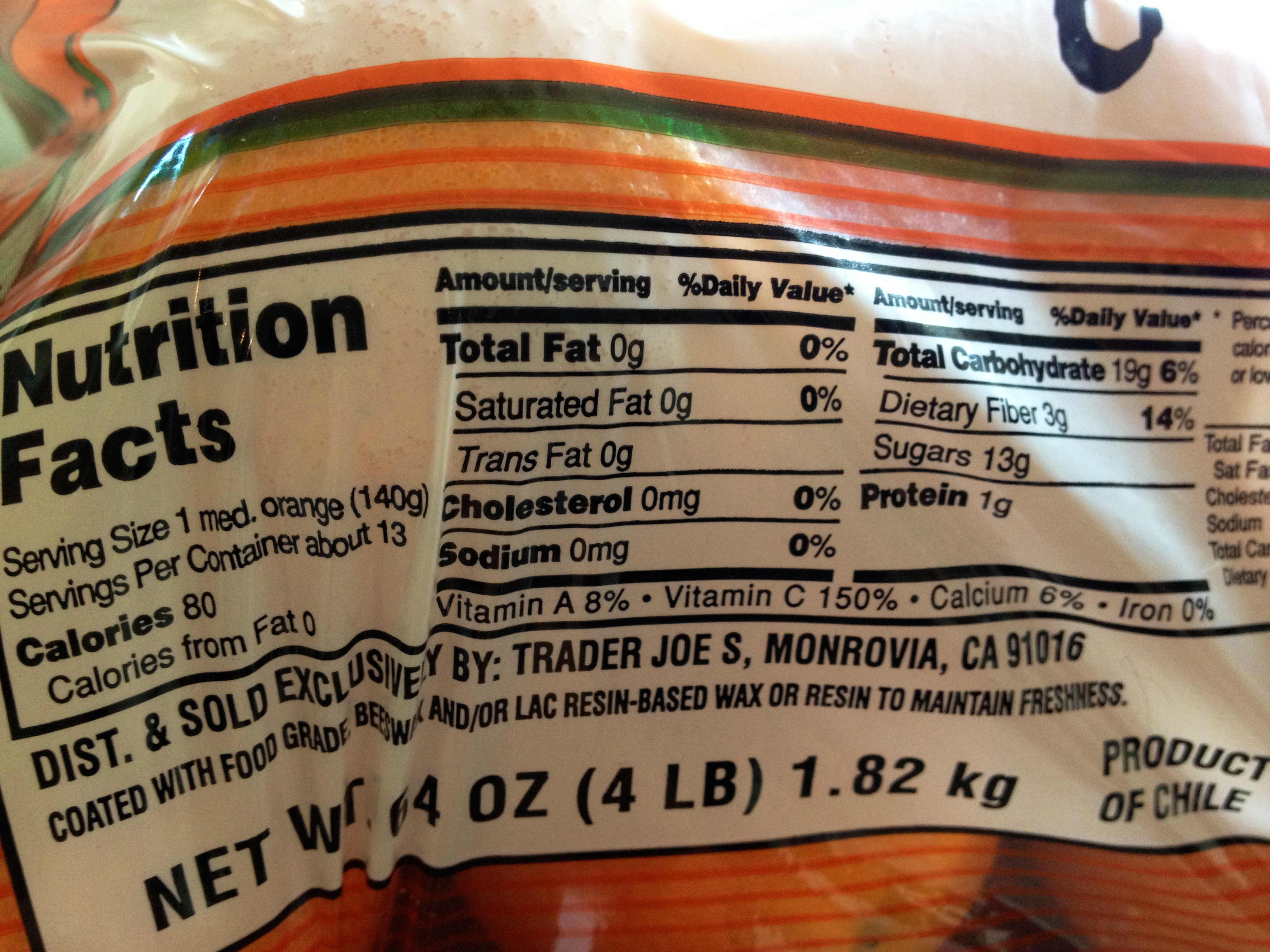 Check out the fiber on this label. 3 grams of fiber. That’s the white peel-y stuff on the outside. This SLOWS DOWN how fast your body absorbs sugar. A good thing.