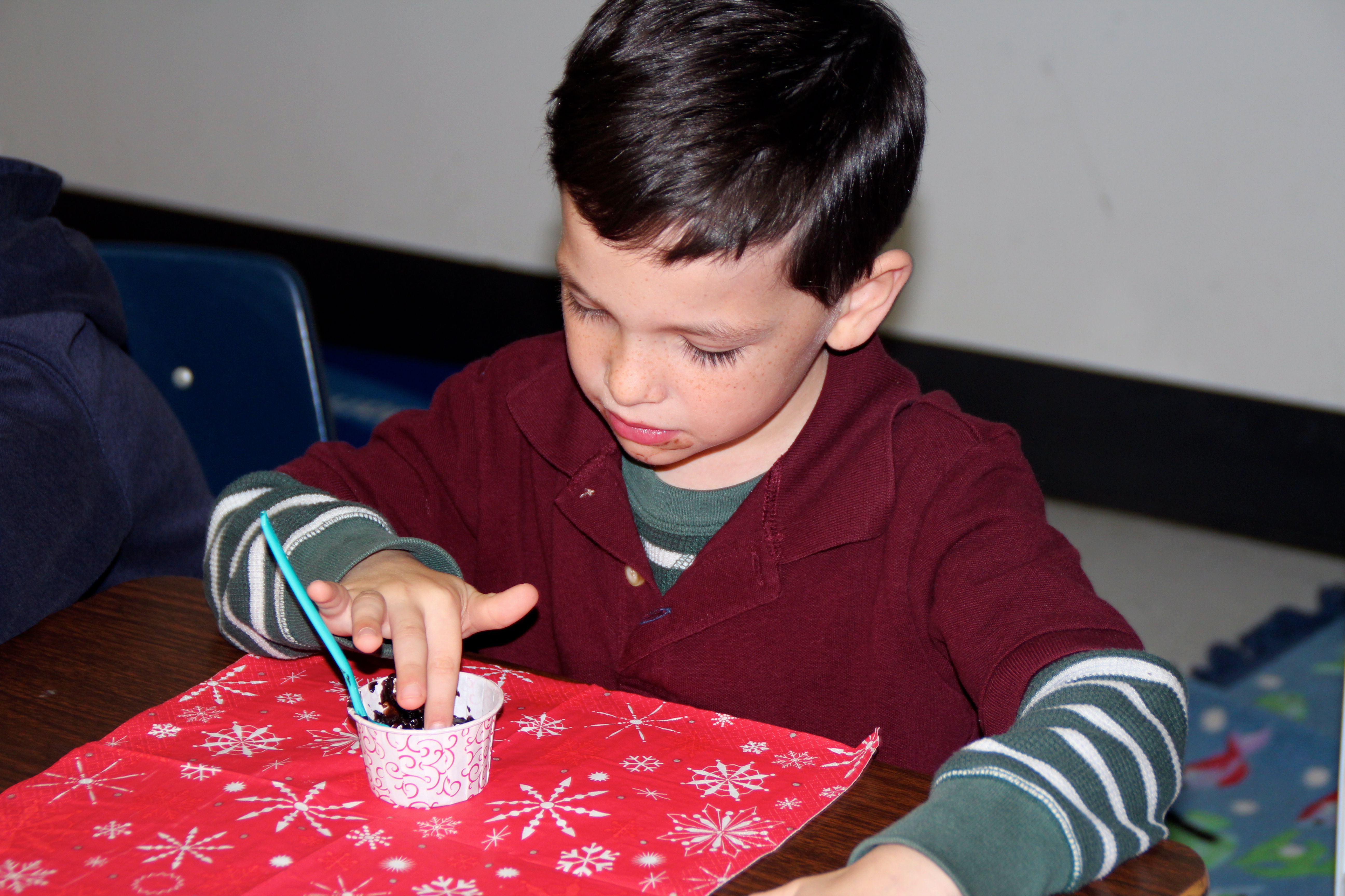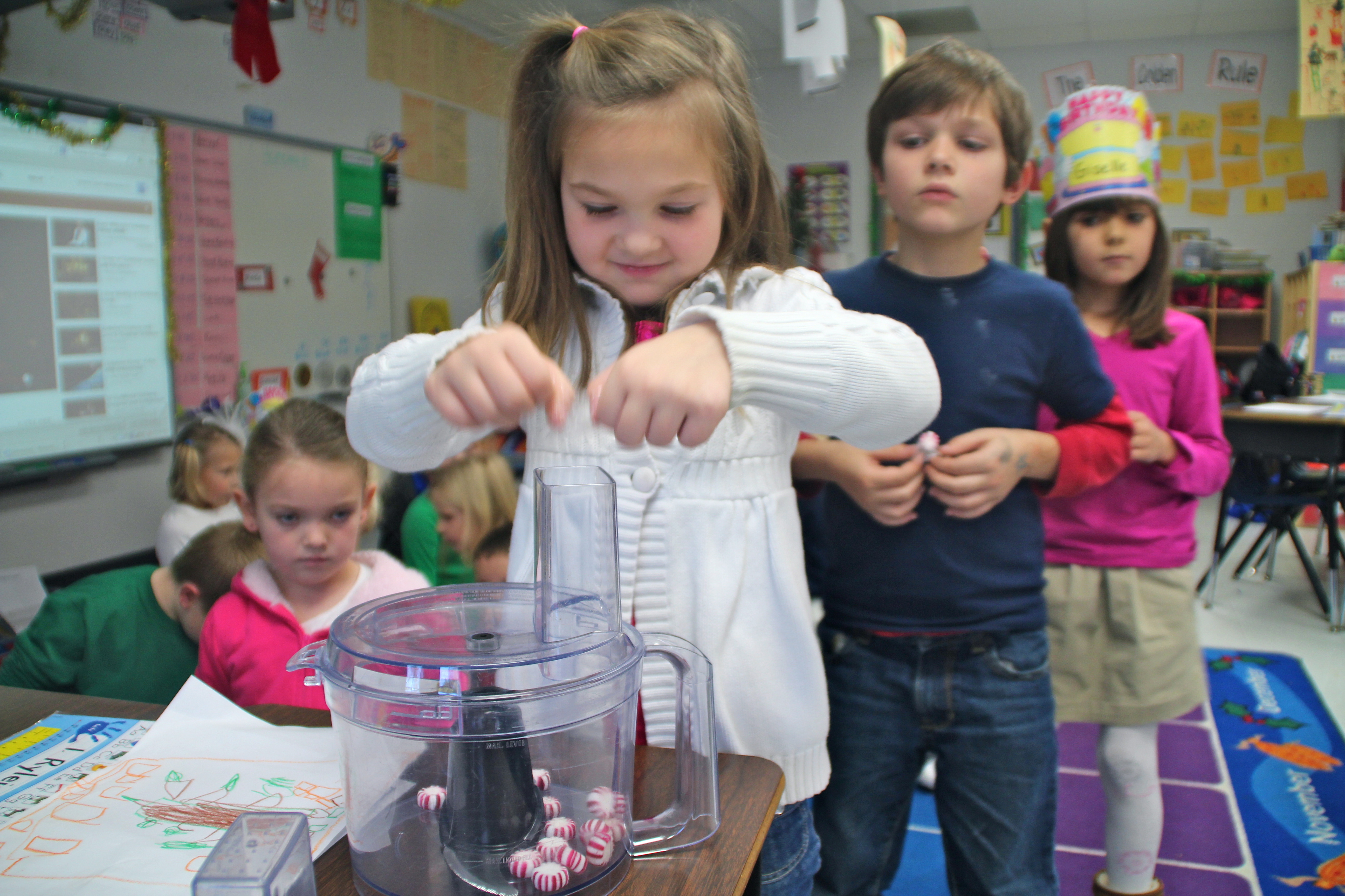 All of the kids lined up and got a turn adding mints to the food processor. I especially like the Trader Joe’s mints because there is no gross red dye in them. Score.
