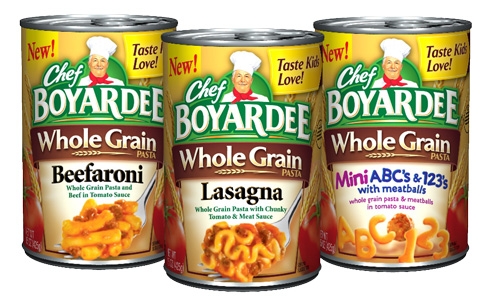 Hilarious. Since when does slapping the label "whole grain" on Chef Boyardee make it healthy? I applaud their efforts, but seriously? I'd rather give my kids plain white pasta than this sodium-laden canned goop.
