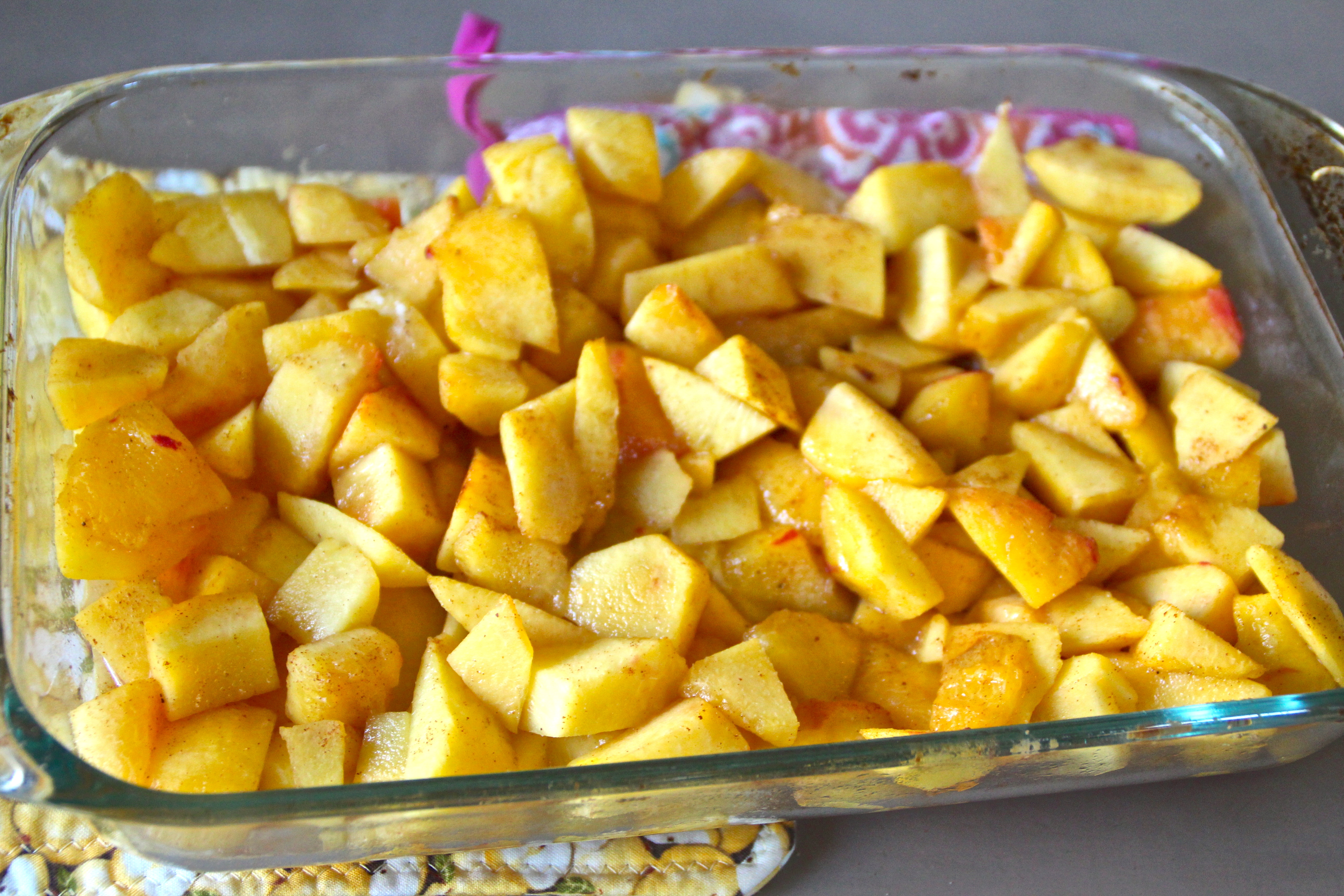 - Press 1/2 of the dough into pan, spreading and flattening with your fingertips.