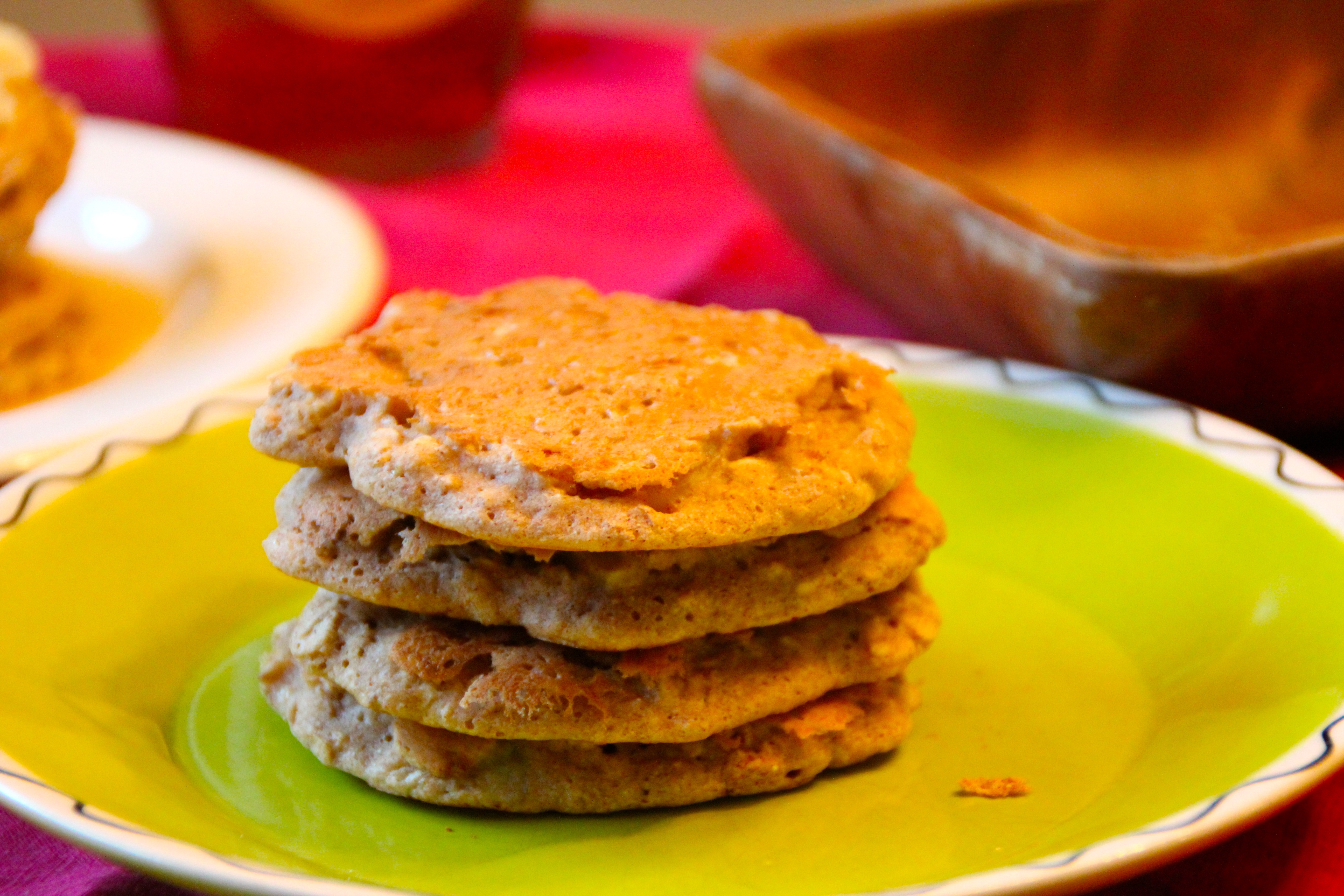 - Spoon your batter into 2-3 inch circles, and cook until the edges lift.