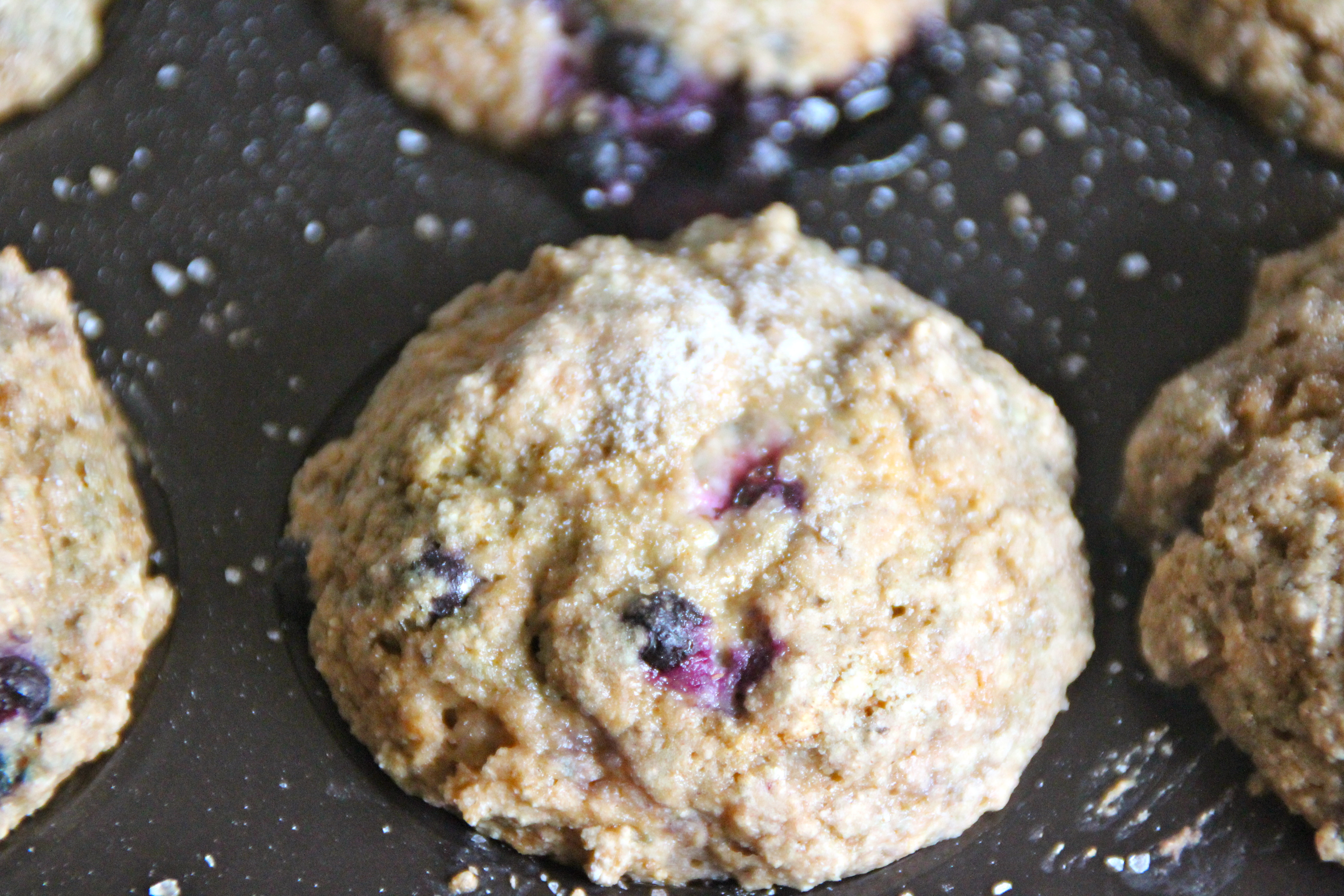 Whole Grain Vegan Blueberry Muffins.