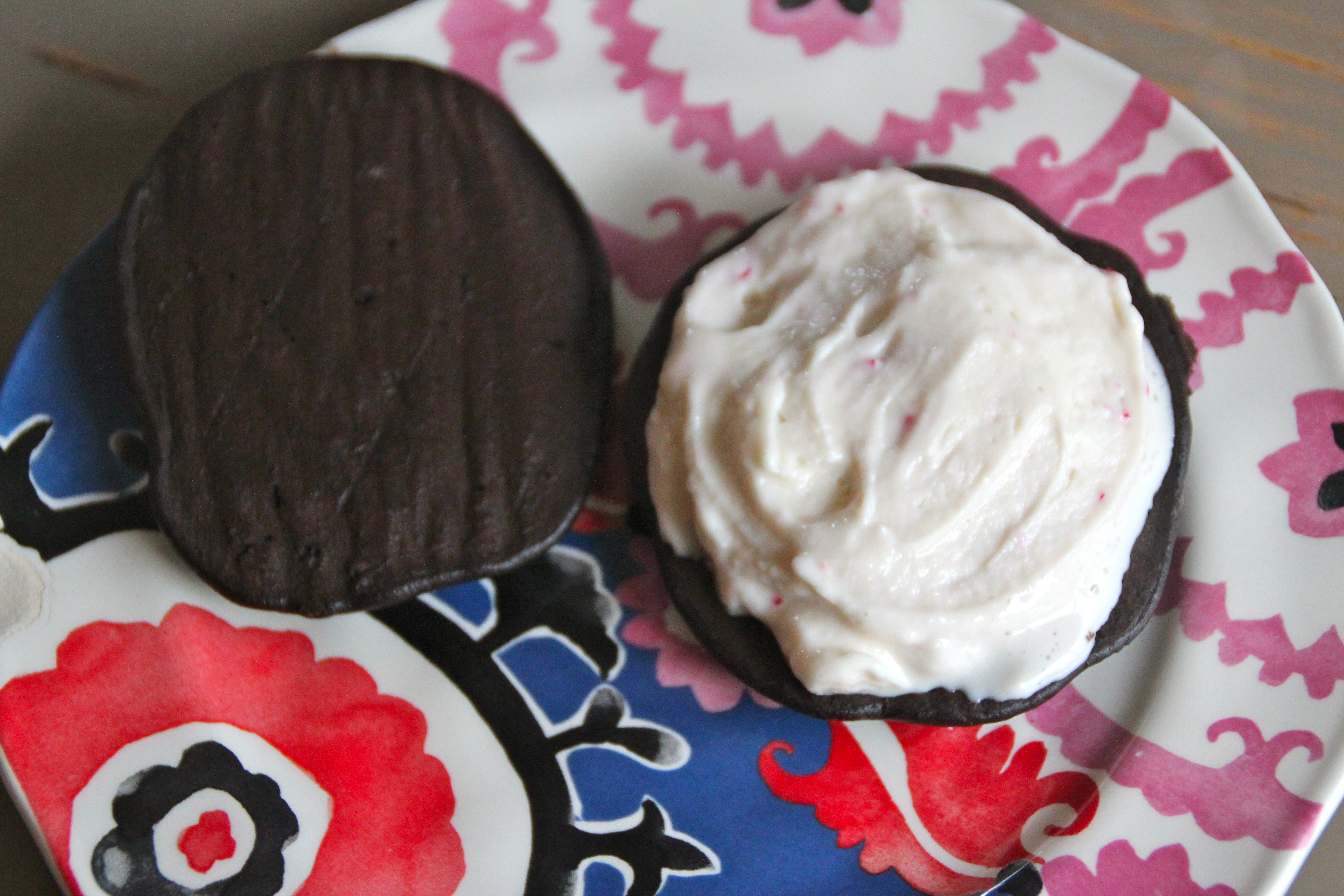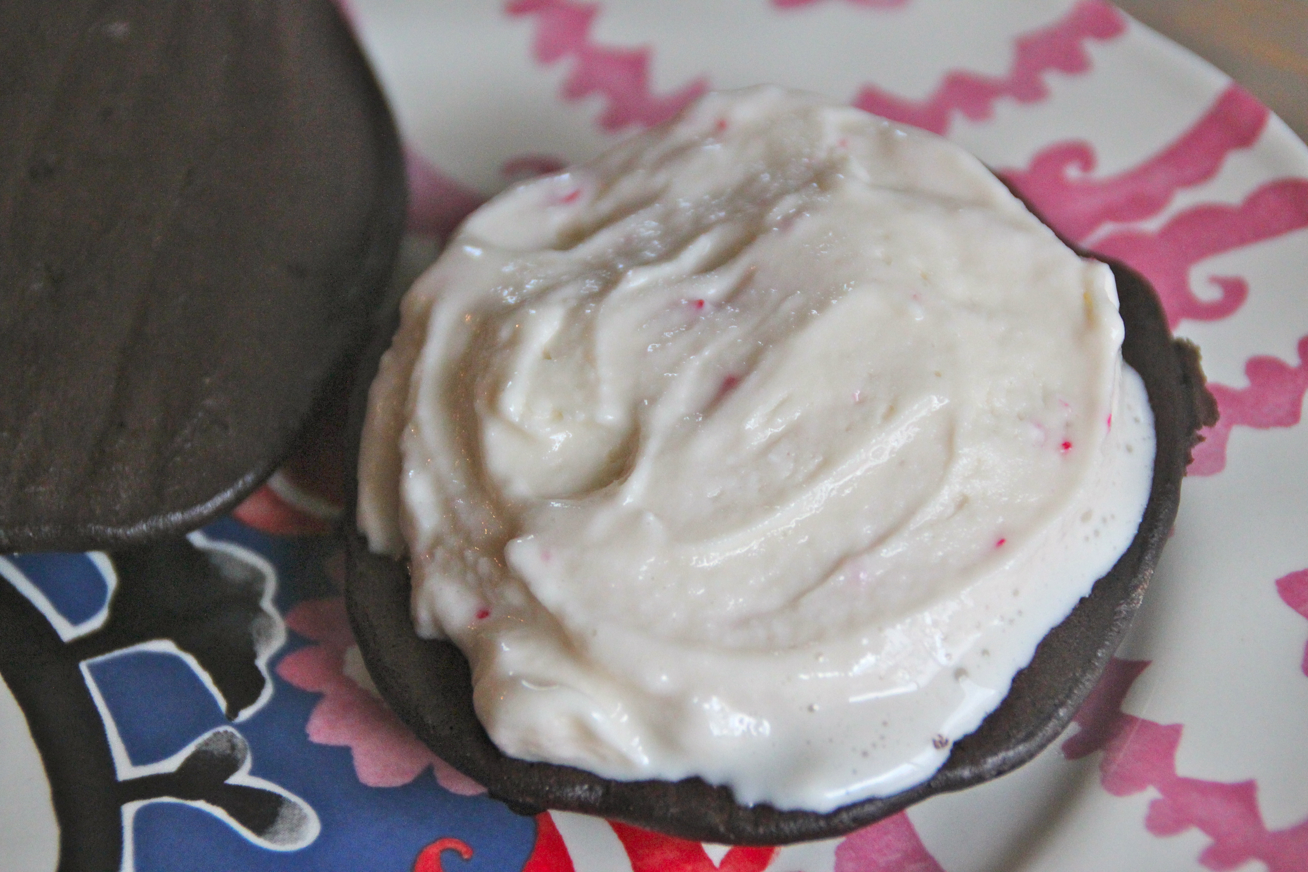 Really it’s just the crushed peppermint. These ice cream sandwiches can be made anytime, I just wanted to holiday it up a bit so I crushed some mints and called it a day.