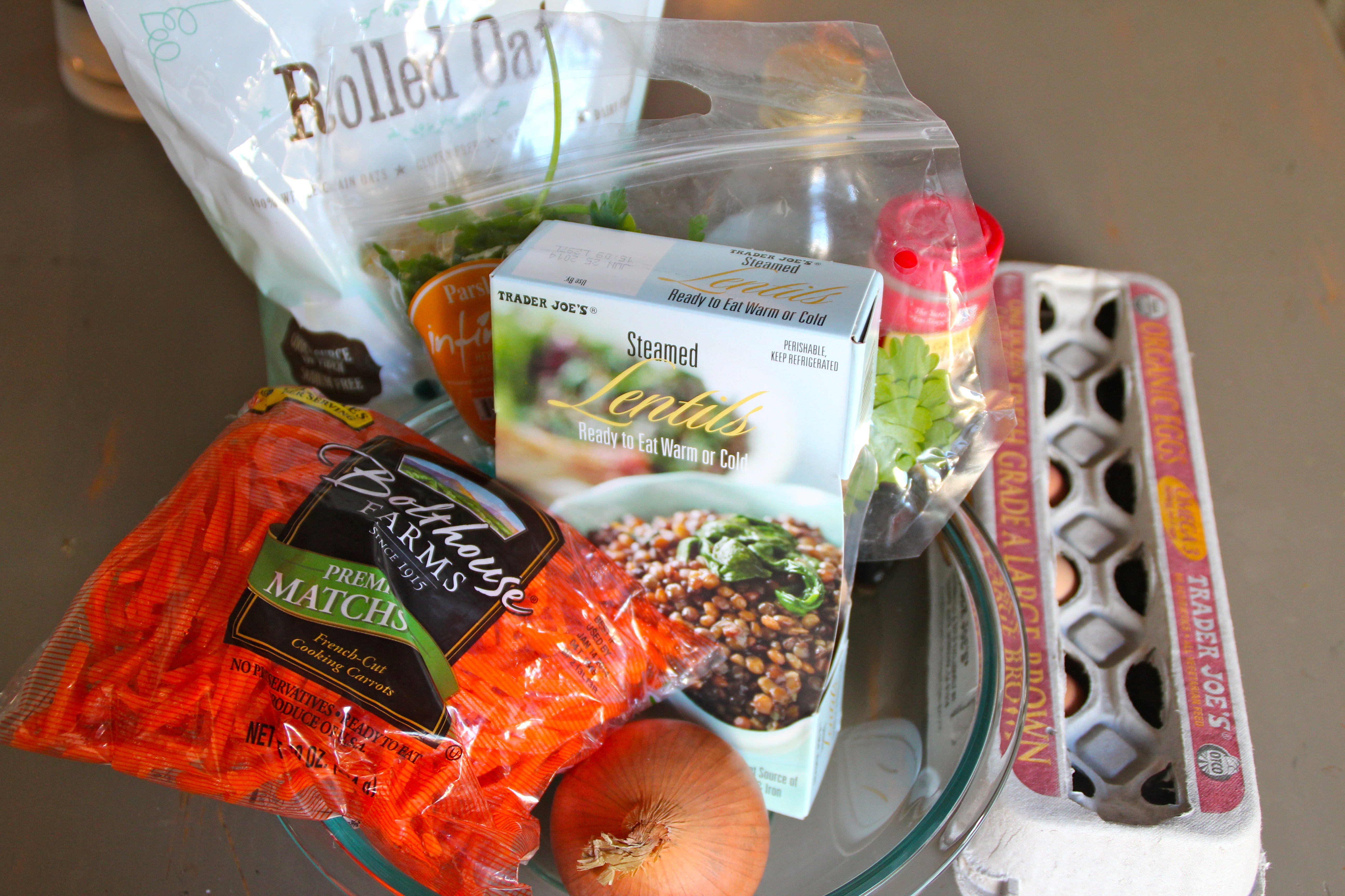 - 1 17.6 oz package Pre-cooked lentils (Mine pictured here are from Trader Joe’s)