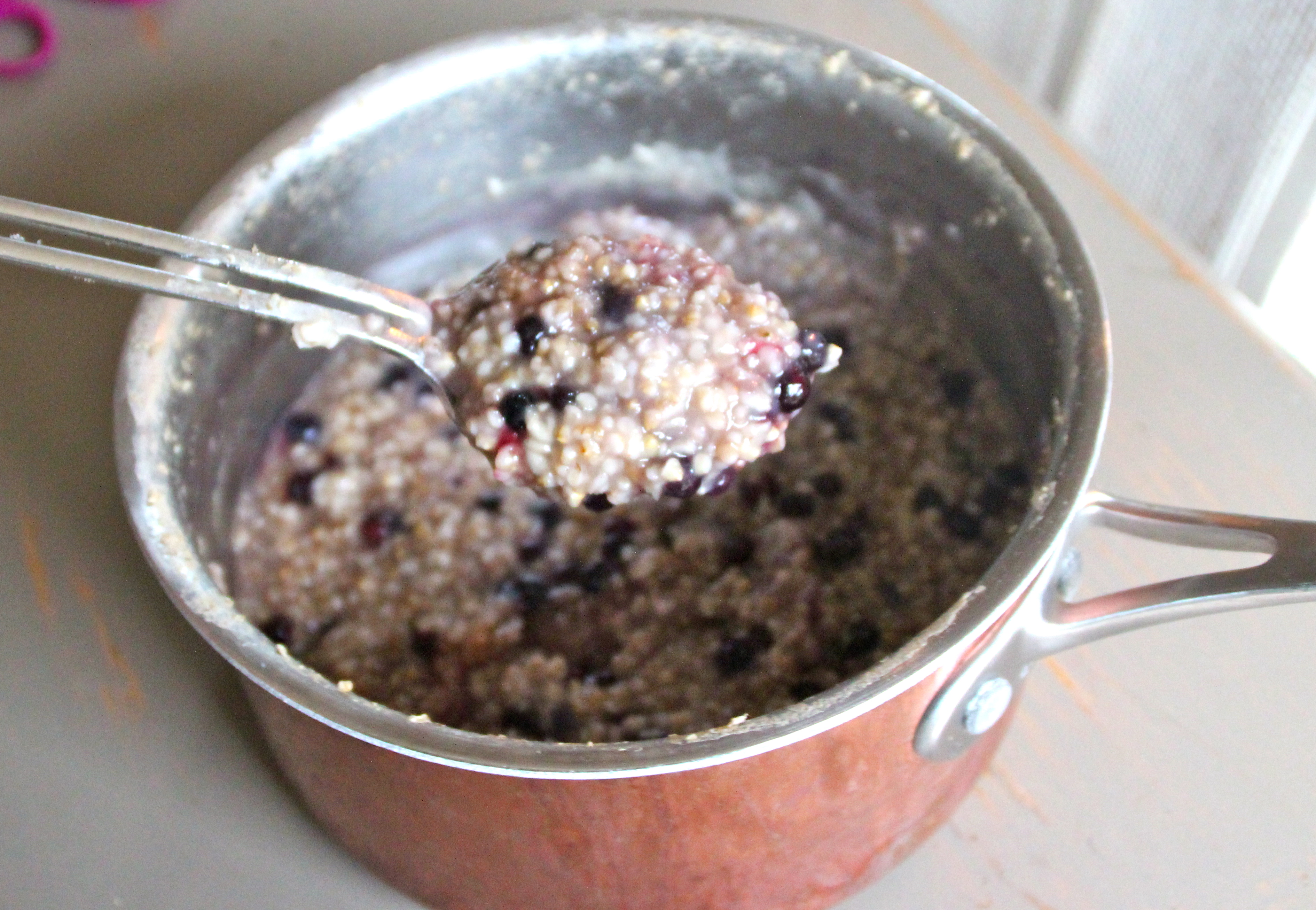 - Add frozen blueberries. Stir for a minute or so, keeping on low heat.