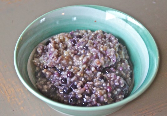 If you are not a big fan of oatmeal’s texture, steel-cut oats may be the kind to change your mind. Although steel-cut oats take a bit longer to cook, they are chewier than regular oatmeal which I like. No slop factor on this breakfast. And although I mention that they take a bit longer than regular oats, really they just simmer on low and you stir every so often. Nothing to stress on. Big deal.