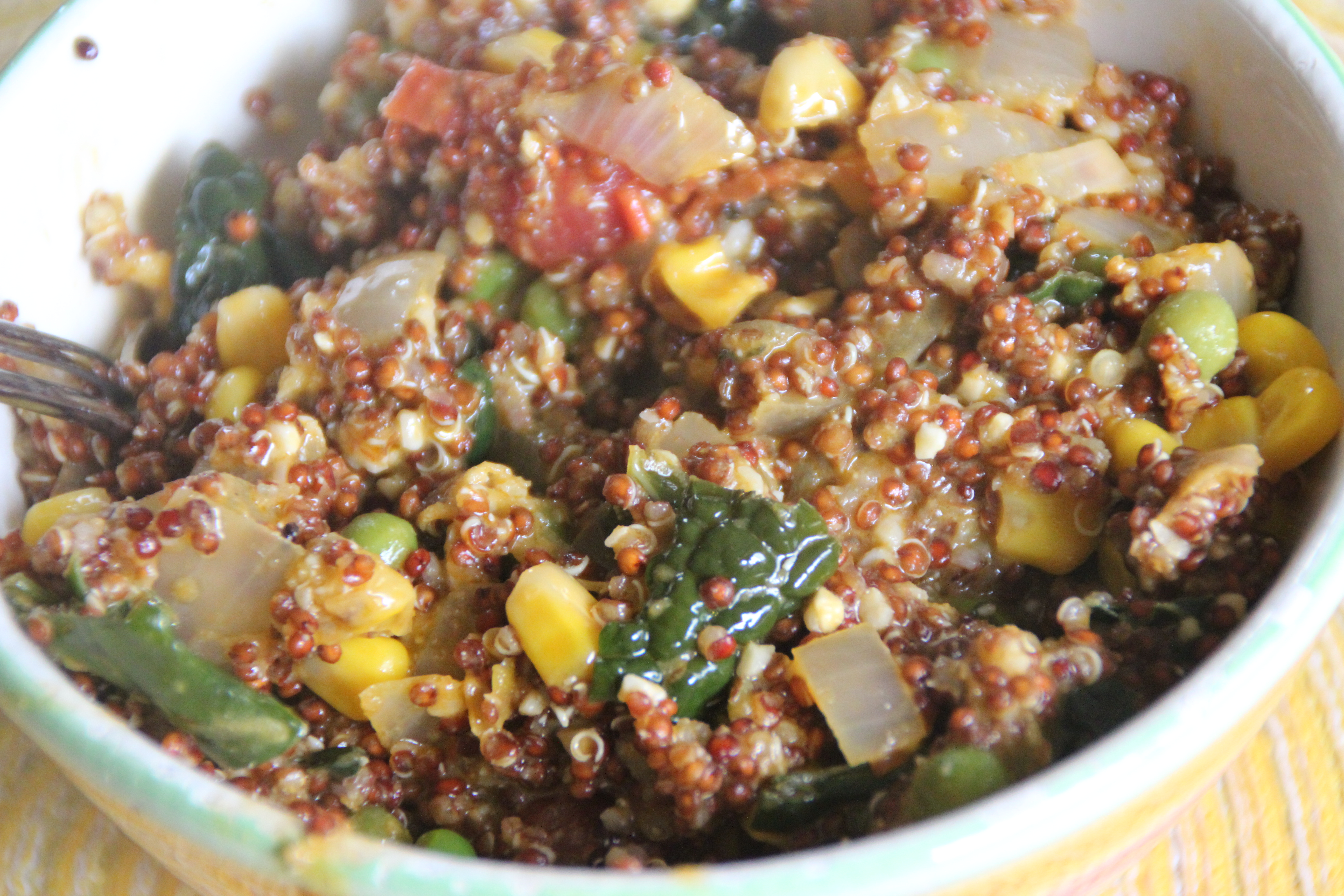 - Serve on top of grain of choice. Brown rice, farro, or quinoa. I did quinoa this time 🙂